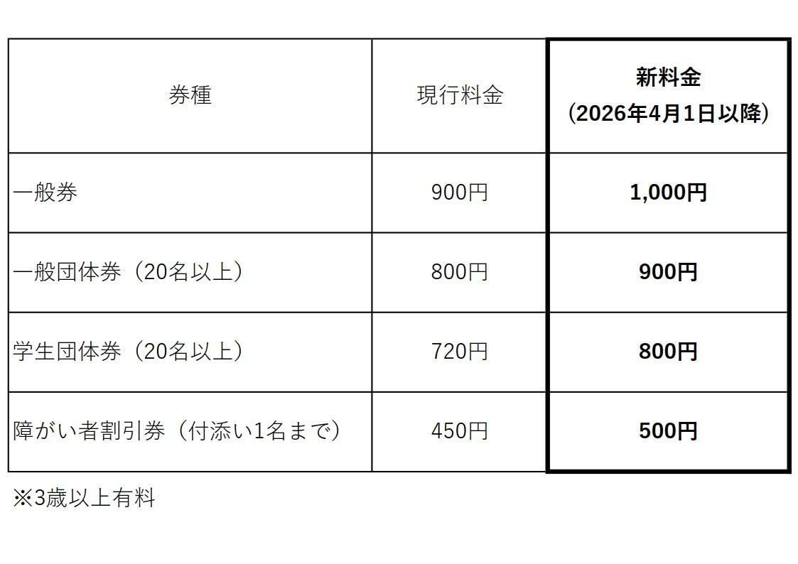 天保山大観覧車では2026年4月1日(水)より大観覧車の乗車料金を下記の通り改定いたします。